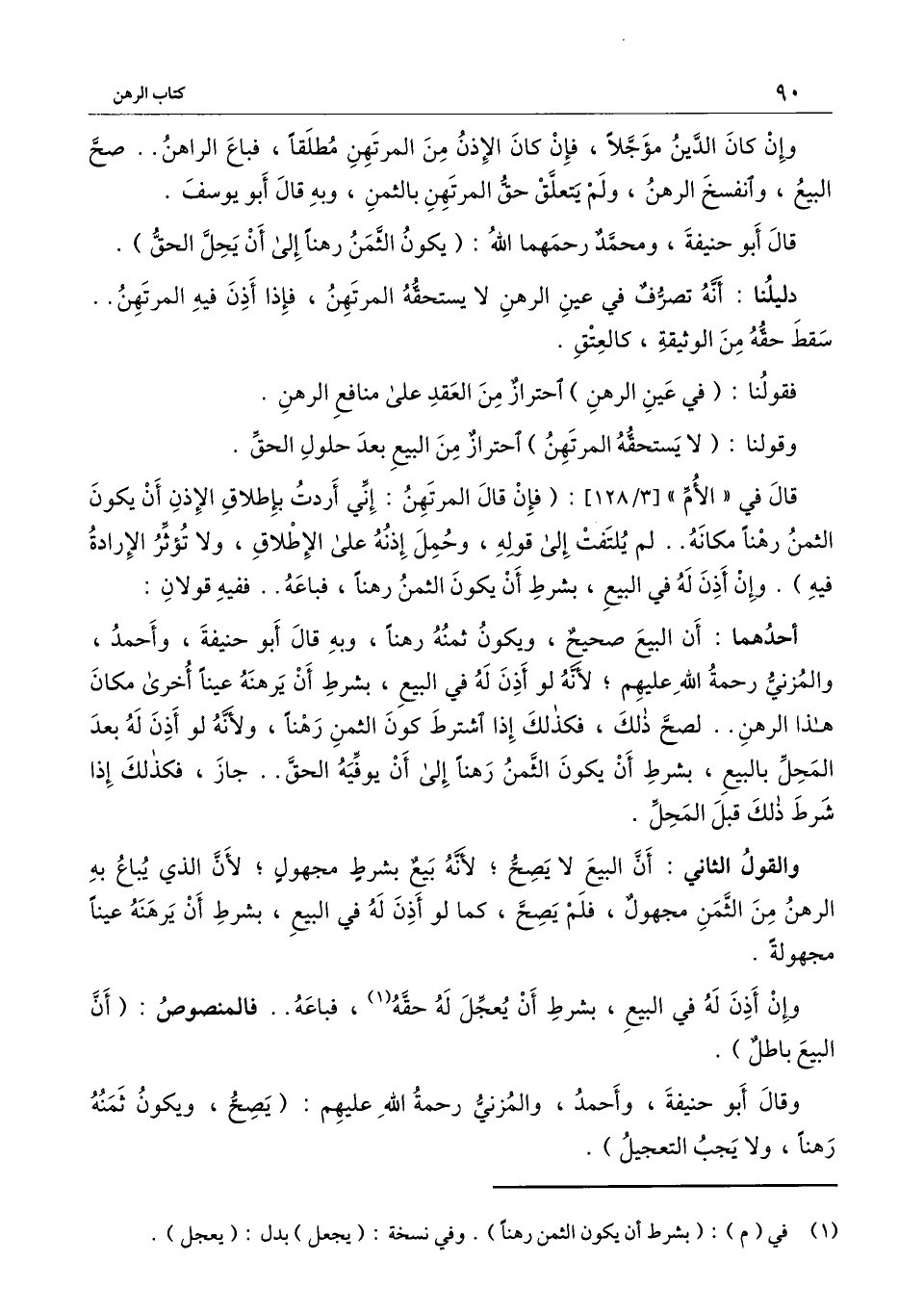 وقال أبو حنيفة، وأحمد، والمزني رحمة الله عليهم: (يصح، ويكون ثمنه رهنا، ولا يجب التعجيل) .