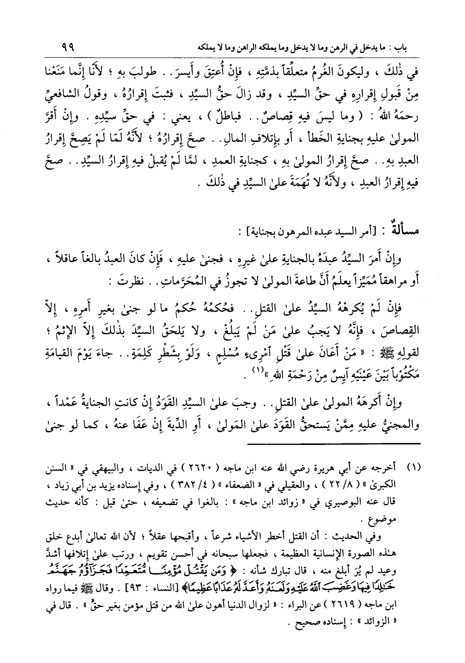 [مسألة: أمر السيد عبده المرهون بجناية]