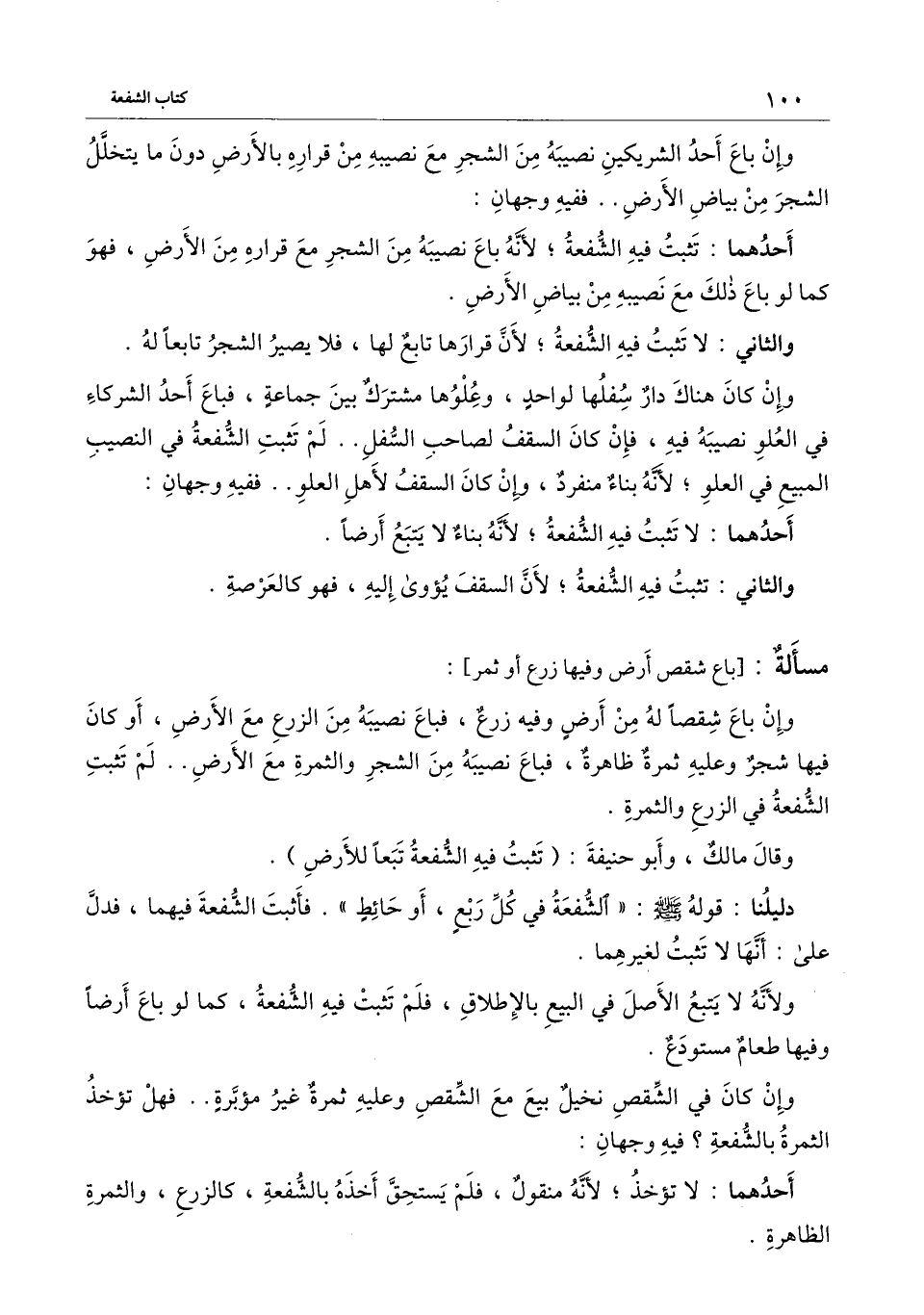 والثاني: لا تثبت فيه الشفعة؛ لأن قرارها تابع لها، فلا يصير الشجر تابعاً له.