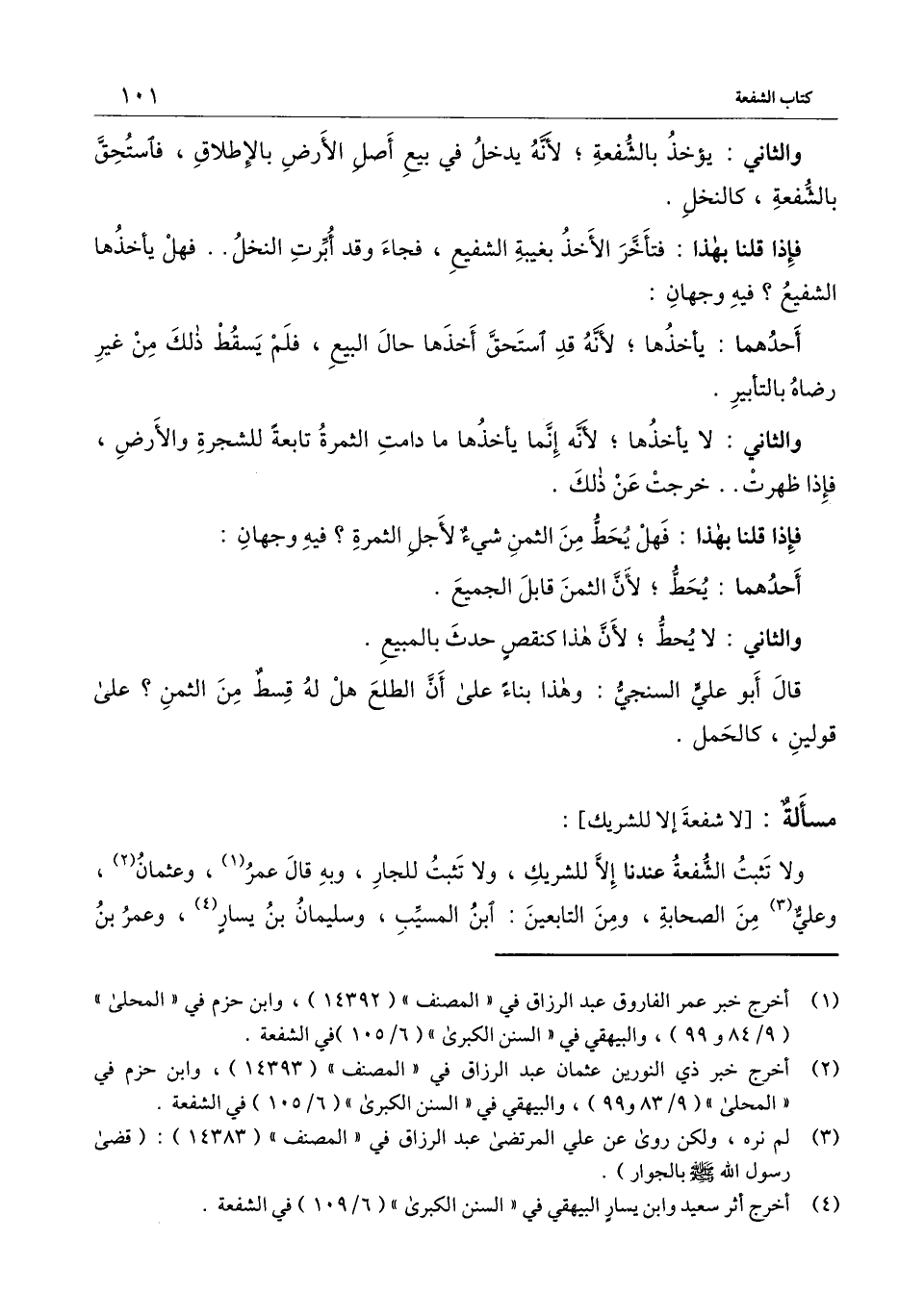 ولا تثبت الشفعة عندنا إلا للشريك، ولا تثبت للجار، وبه قال عمر، وعثمان، وعلي من الصحابة، ومن التابعين: ابن المسيب، وسليمان بن يسار، وعمر بن