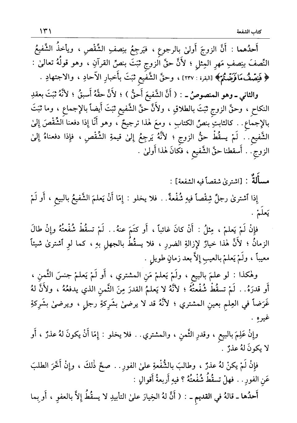 [مسألة: اشترى شقصا فيه الشفعة]