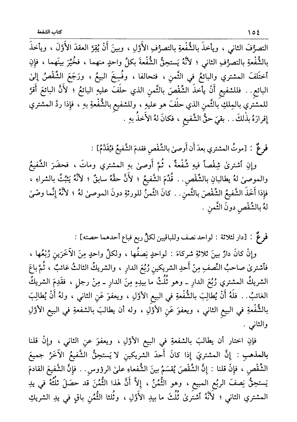وإن كان دار بين ثلاثة شركاء: لواحد نصفها، ولكل واحد من الآخرين ربعها، فاشترى صاحب النصف من أحد الشريكين ربع الدار، والشريك الثالث غائب، ثم باع الشريك المشتري ربع الدار - وهو ثلث ما بيده من الدار - من رجل، فقدم الشريك الغائب.. فله أن يطالب بالشفعة في البيع الأول، ويعفو عن الثاني، وله أن يطالب بالشفعة في البيع الثاني، ويعفو عن الأول، وله أن يطالب بالشفعة في البيع الأول والثاني.