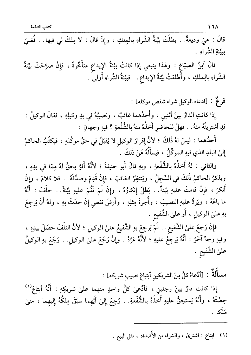 [فرع: ادعاء الوكيل شراء شقص موكله]