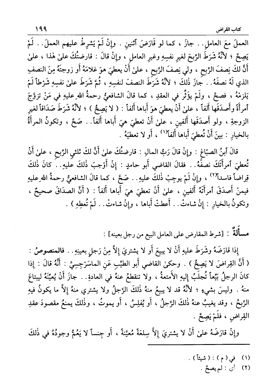 إذا قارضه وشرط عليه أن لا يبيع أو لا يشتري إلا من رجل بعينه.. فالمنصوص: (أن القراض لا يصح) . وحكى القاضي أبو الطيب عن الماسرجسي: أنه قال: إذا كان الرجل بيعا تجلب إليه الأمتعة، ولا تنقطع عنه في العادة.. جاز أن يعينه ليبتاع منه. وليس بشيء؛ لأنه قد لا يبيع منه ذلك الرجل ولا يشتري منه إلا ما يكون فيه الربح، وقد يغيب عنه ذلك الرجل، أو يفلس، أو يموت، وذلك يمنع مقصود عقد القراض، فلم يصح.