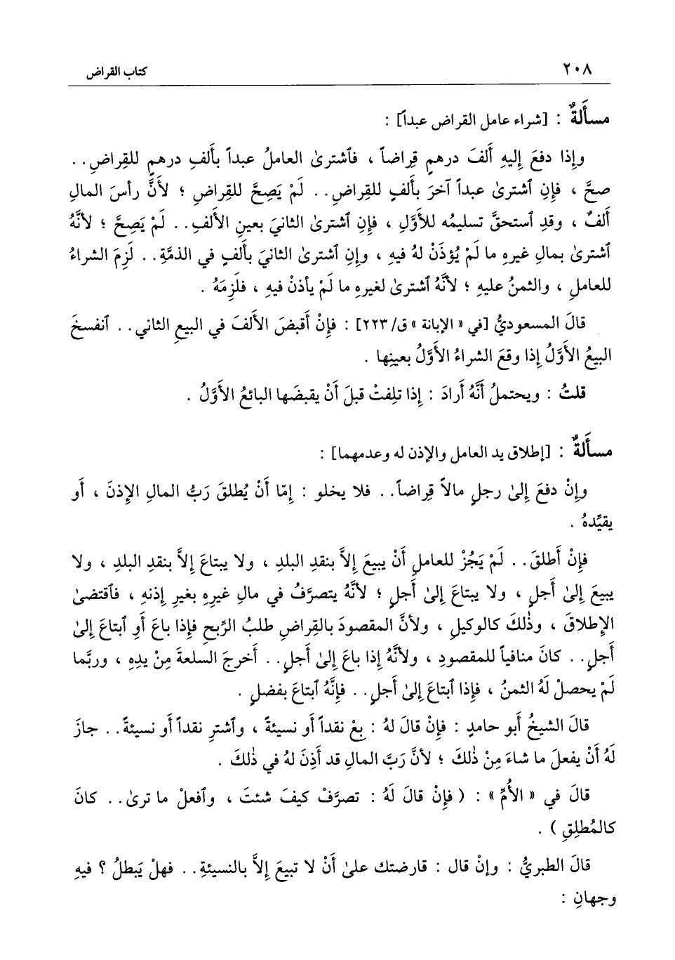 قال الشيخ أبو حامد: فإن قال له: بع نقدا أو نسيئة، واشتر نقدا أو نسيئة.. جاز له أن يفعل ما شاء من ذلك؛ لأن رب المال قد أذن له في ذلك.