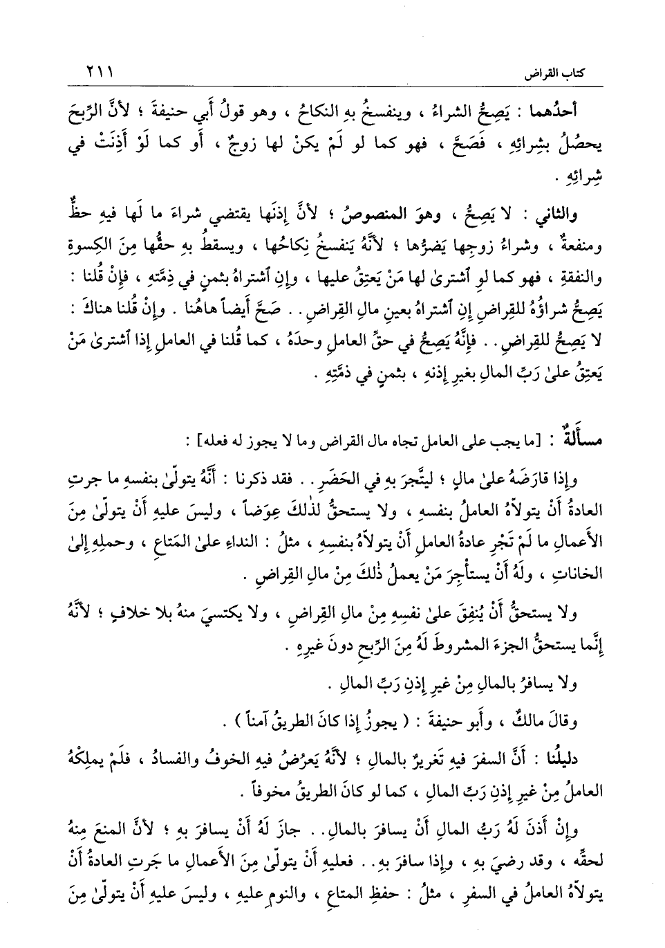 مسألة: [ما يجب على العامل تجاه مال القراض وما لا يجوز له فعله] :