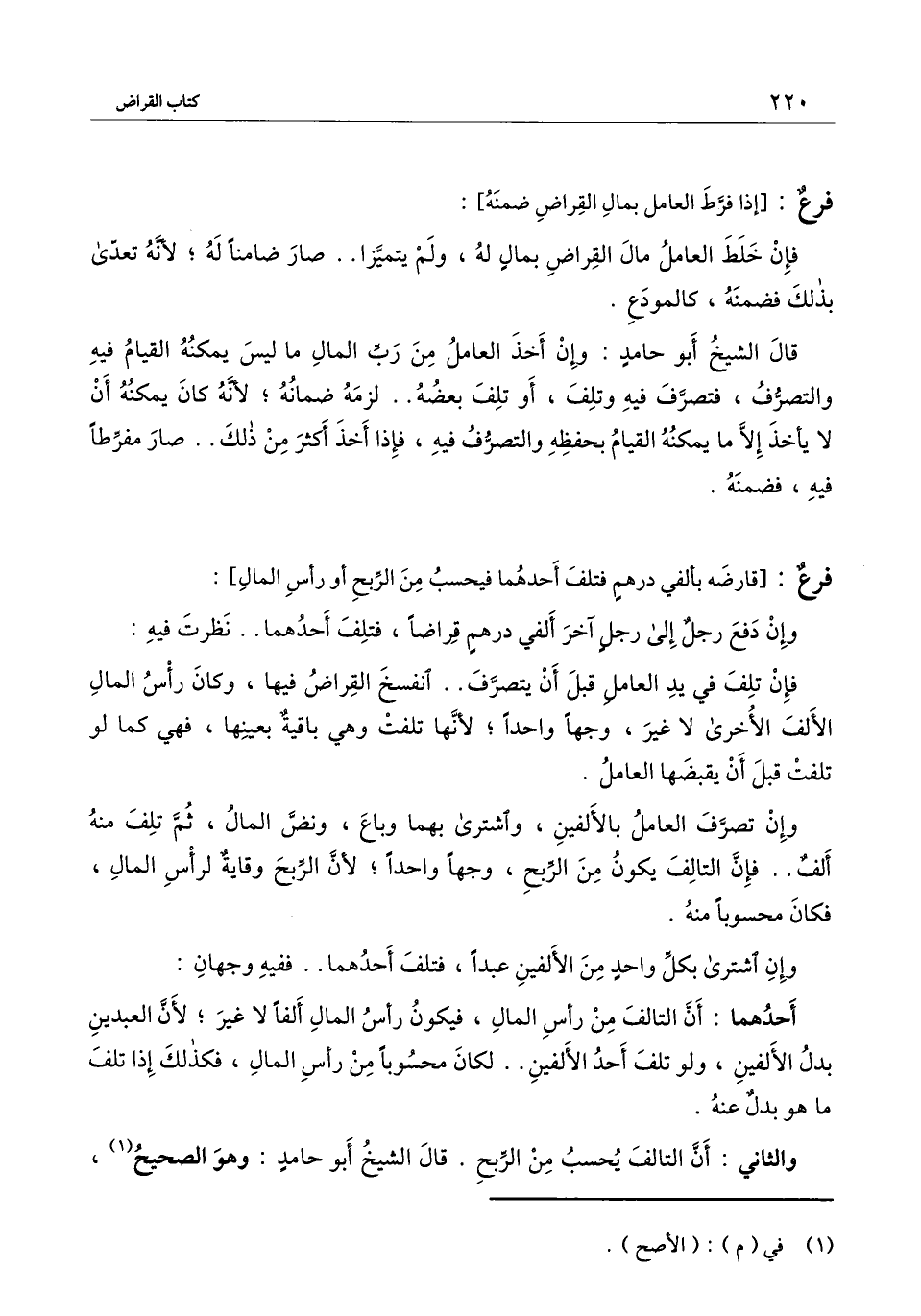 والثاني: أن التالف يحسب من الربح. قال الشيخ أبو حامد: وهو الصحيح
