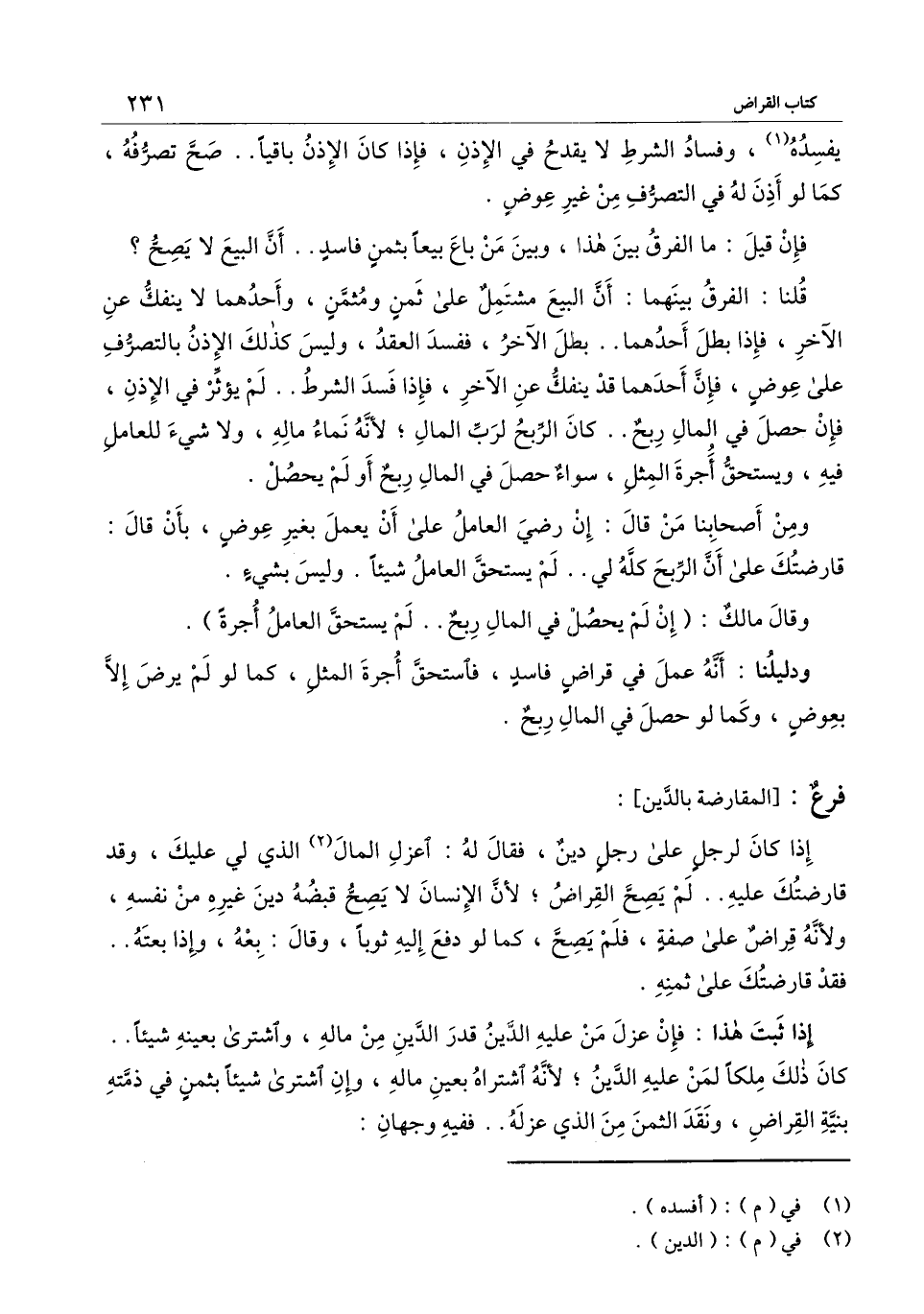 [فرع: المقارضة بالدين]