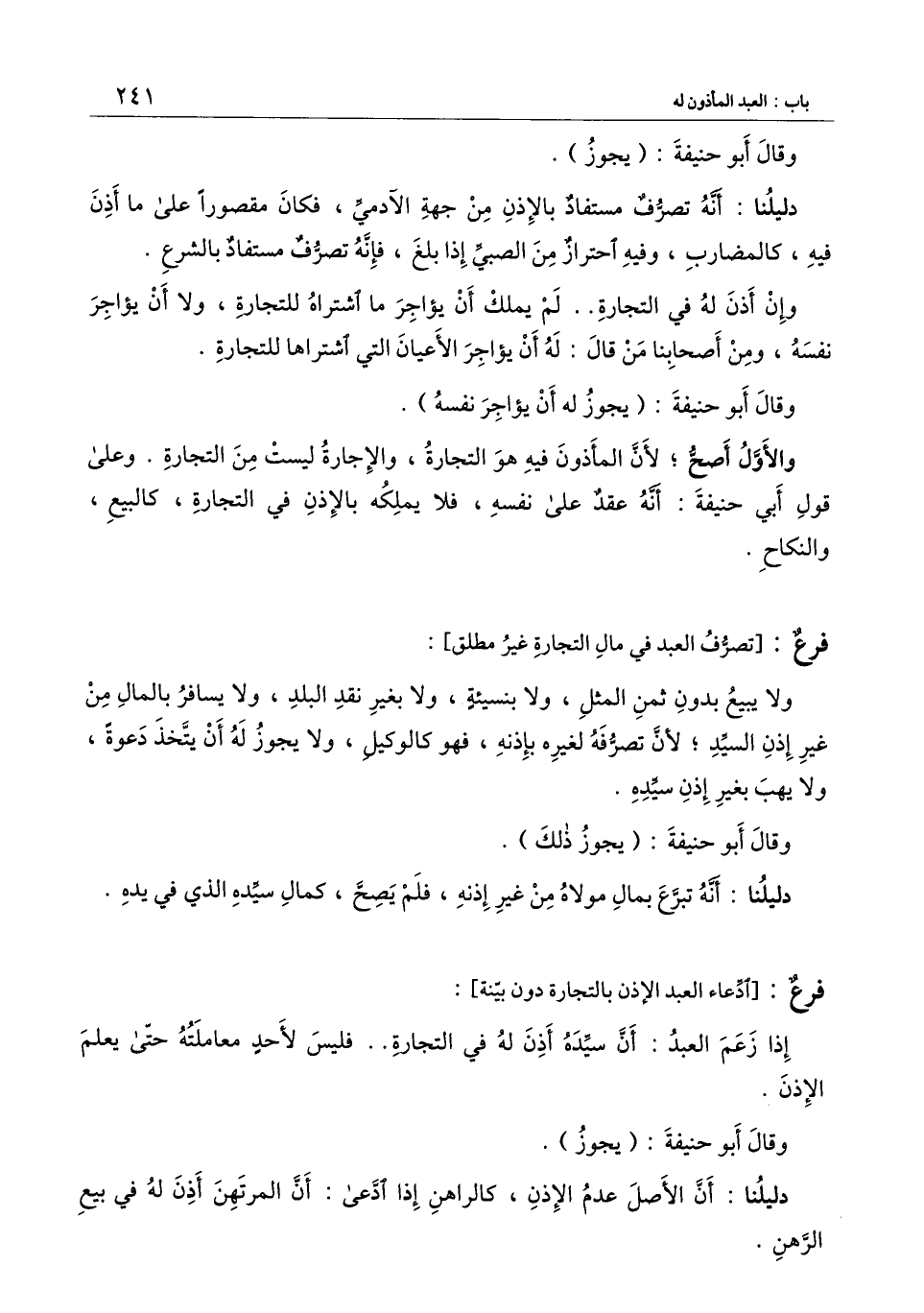 [فرع: تصرف العبد في مال التجارة غير مطلق]