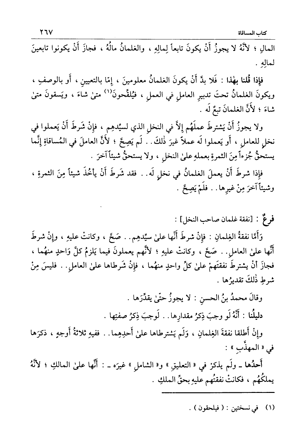 فإذا شرط أن يعمل الغلمان في نخل له.. فقد شرط أن يأخذ شيئًا من الثمرة، وشيئًا آخر من غيرها.. فلم يصح.