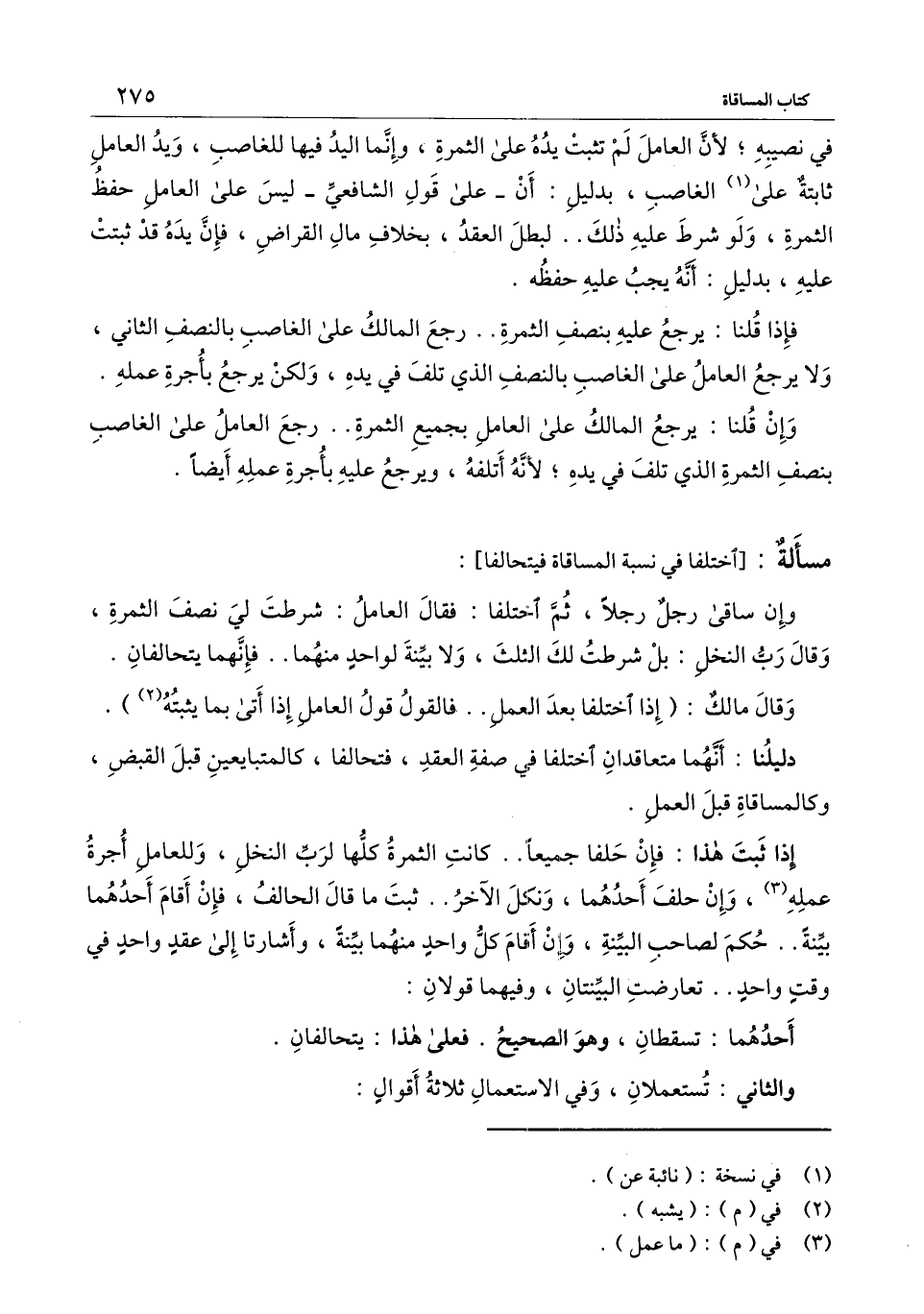 وإن ساقى رجل رجلًا، ثم اختلفا: فقال العامل: شرطت لي نصف الثمرة، وقال رب النخل: بل شرطت لك الثلث، ولا بينة لواحد منهما.. فإنهما يتحالفان.