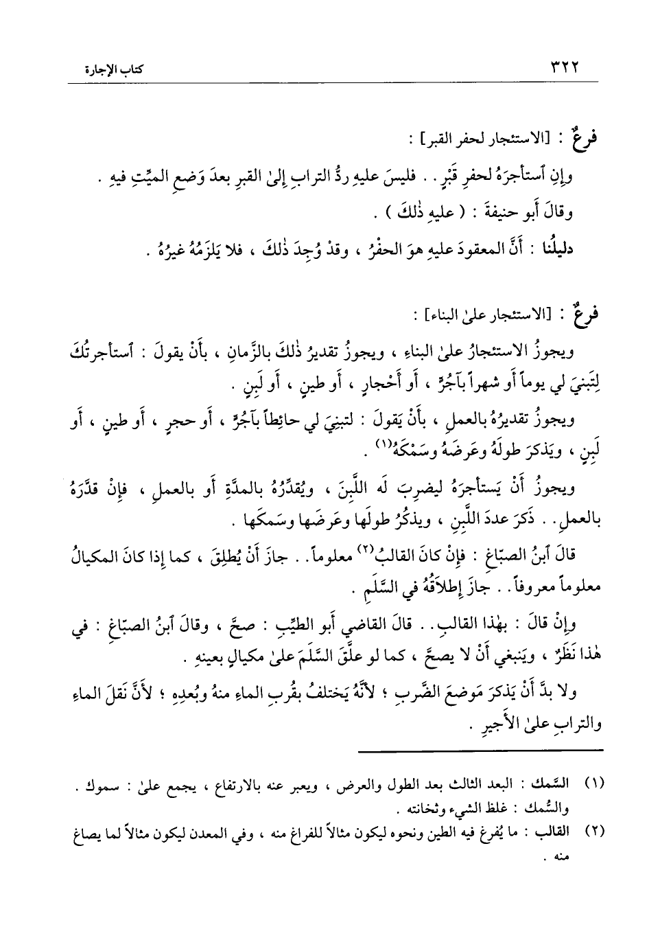 ويجوز تقديره بالعمل، بأن يقول: لتبني لي حائطًا بآجر، أو حجر، أو طين، أو لبن، ويذكر طوله وعرضه وسمكه.