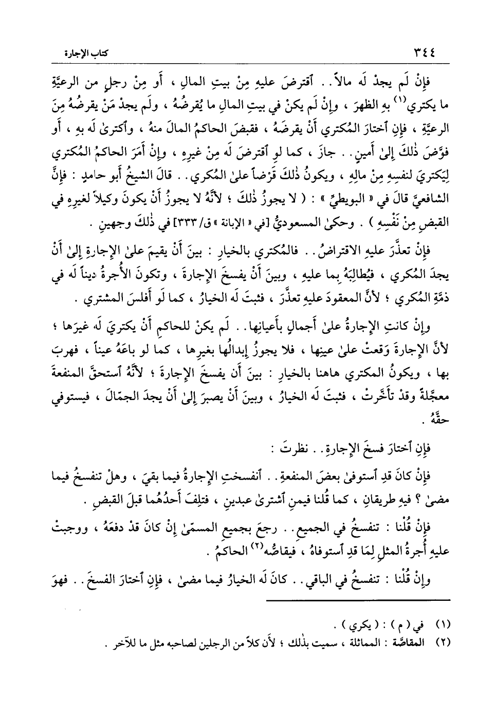فإن تعذر عليه الاقتراض.. فالمكتري بالخيار: بين أن يقيم على الإجارة إلى أن يجد المكري، فيطالبه بما عليه، وبين أن يفسخ الإجارة، وتكون الأجرة دينًا له في ذمة المكري؛ لأن المعقود عليه تعذر، فثبت له الخيار، كما لو أفلس المشتري.