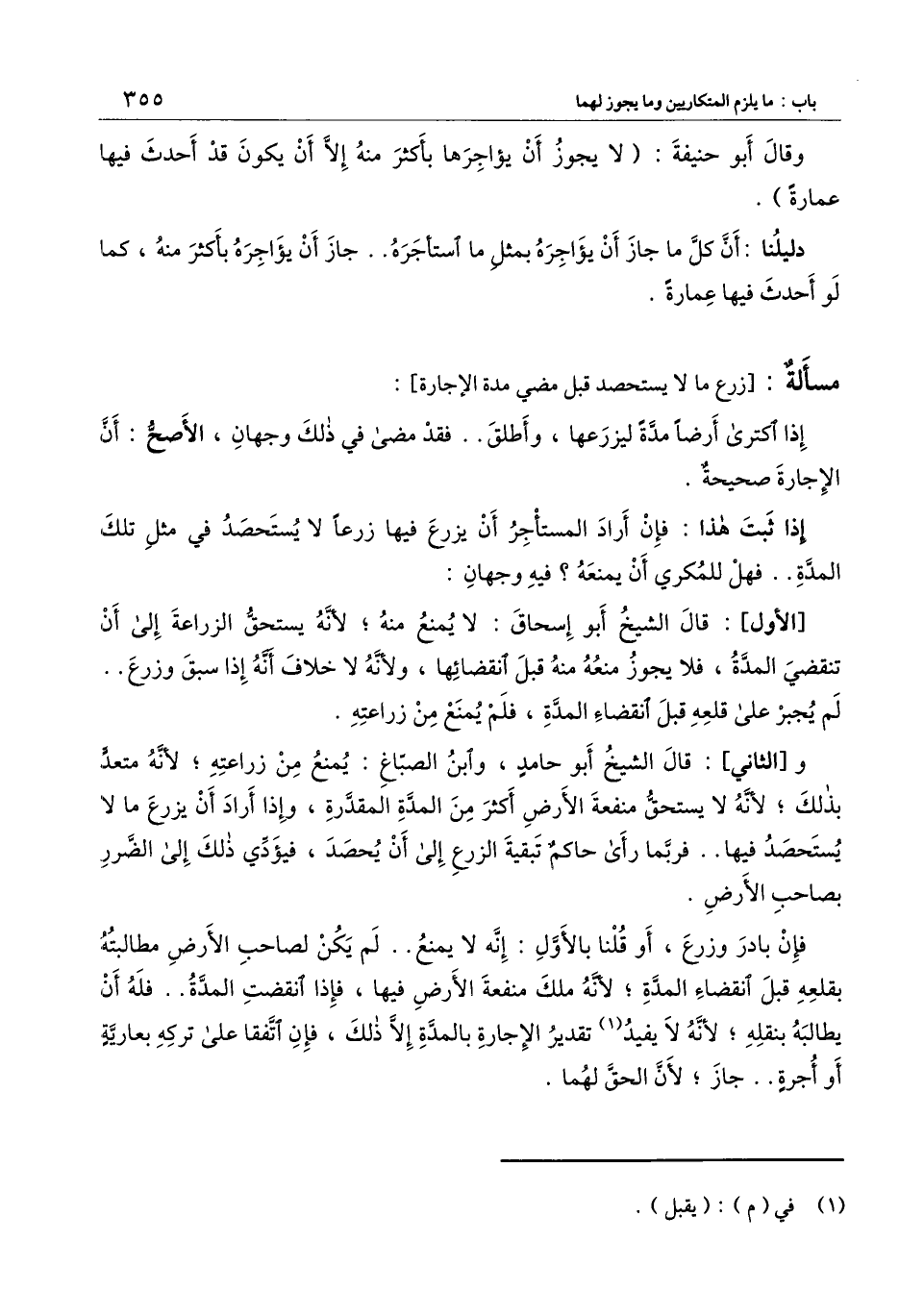 [مسألة: زرع ما لا يستحصد قبل مضي مدة الإجارة]