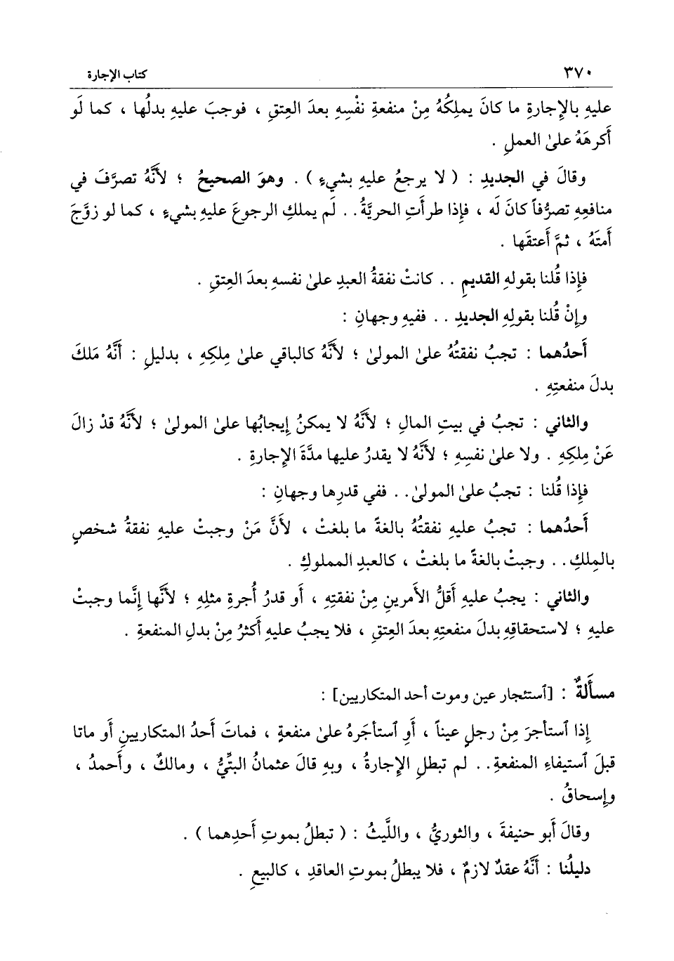 إذا استأجر من رجل عينًا، أو استأجره على منفعة، فمات أحد المتكاريين أو ماتا قبل استيفاء المنفعة.. لم تبطل الإجارة، وبه قال عثمان البتي، ومالك، وأحمد، وإسحاق.