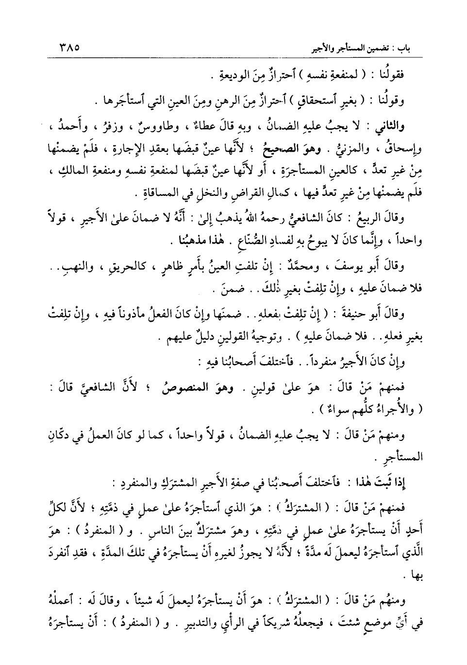 ومنهم من قال: (المشترك) : هو أن يستأجره ليعمل له شيئًا، وقال له: اعمله في أي موضع شئت، فيجعله شريكًا في الرأي والتدبير. و (المنفرد) : أن يستأجره
