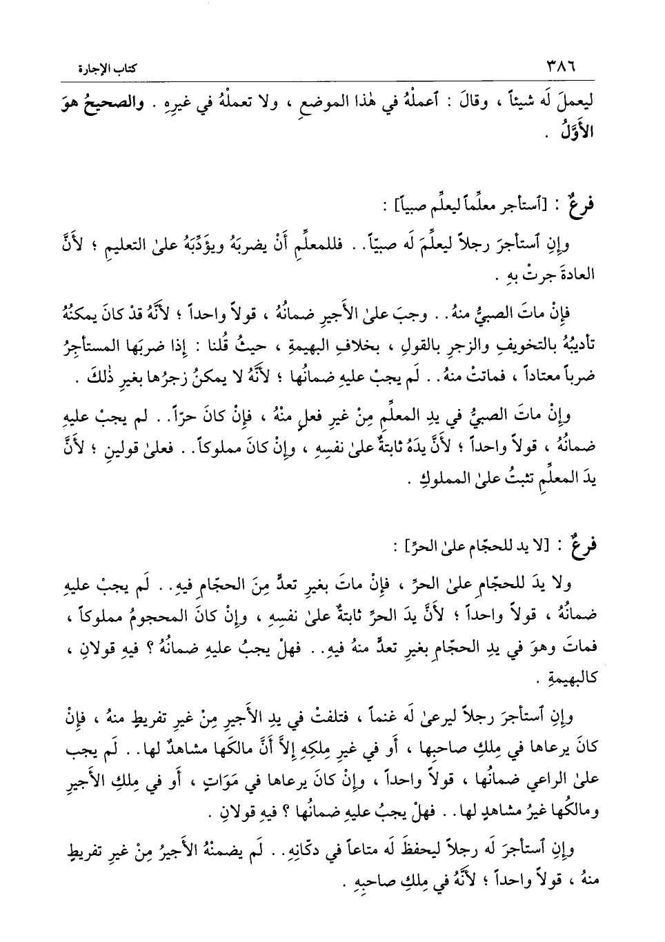 ولا يد للحجام على الحر، فإن مات بغير تعد من الحجام فيه.. لم يجب عليه ضمانه، قولًا واحدًا؛ لأن يد الحر ثابتة على نفسه، وإن كان المحجوم مملوكًا، فمات وهو في يد الحجام بغير تعد منه فيه.. فهل يجب عليه ضمانه؟ فيه قولان، كالبهيمة.