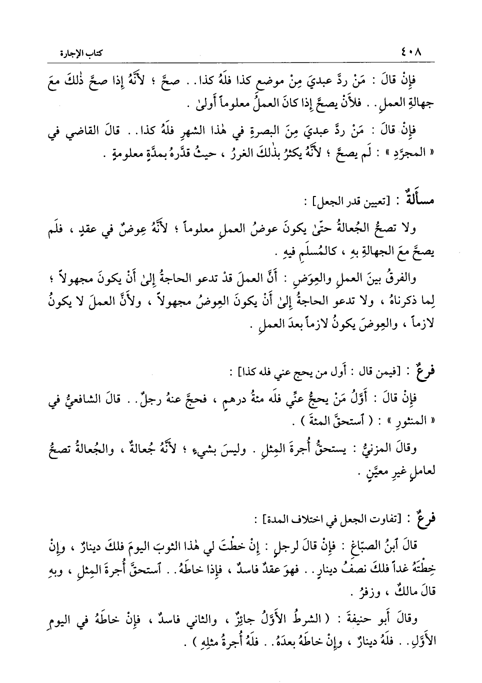 فإن قال: من رد عبدي من موضع كذا فله كذا.. صح؛ لأنه إذا صح ذلك مع جهالة العمل.. فلأن يصح إذا كان العمل معلومًا أولى.