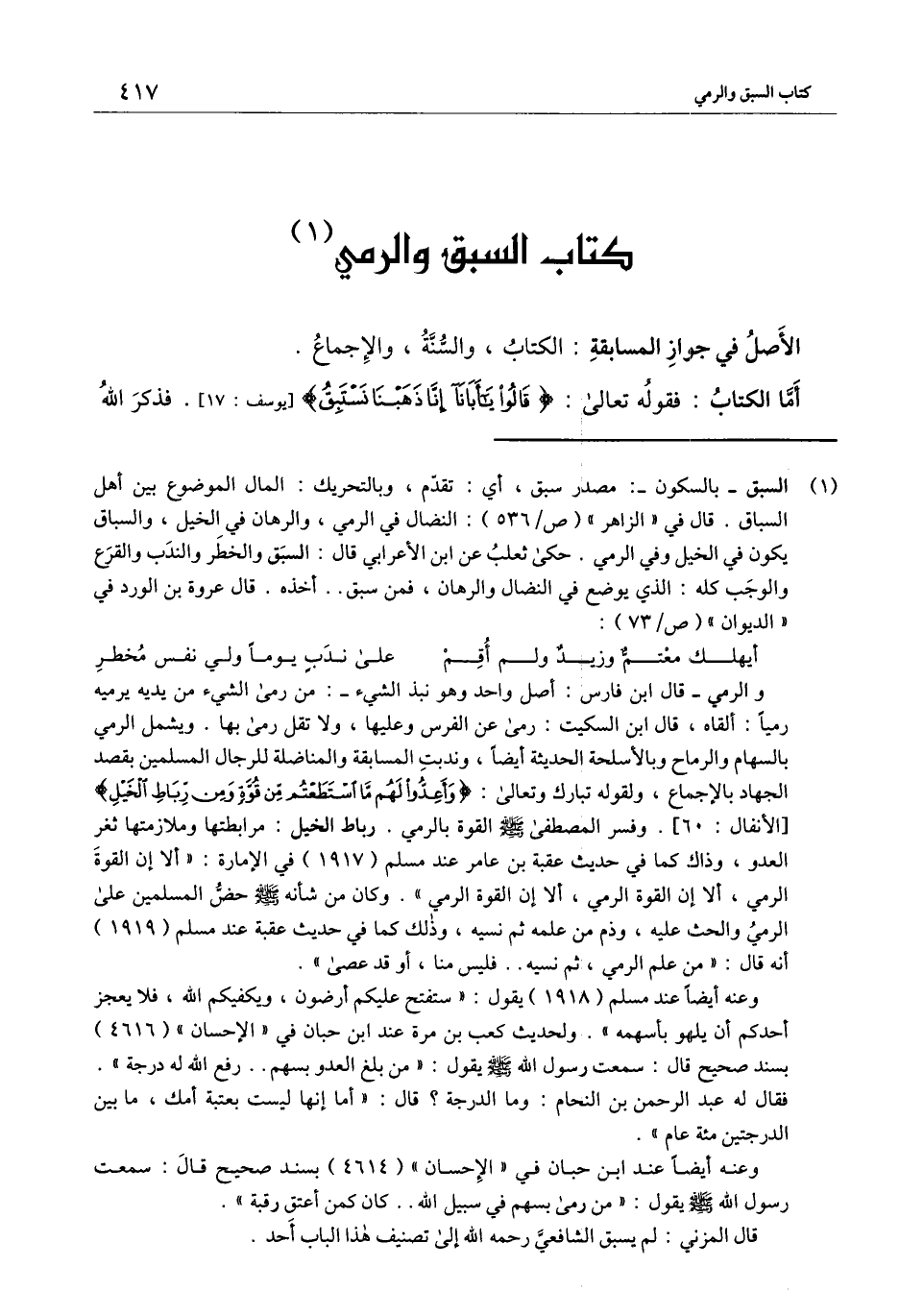 كتاب السبق والرمي الأصل في جواز المسابقة: الكتاب، والسنة، والإجماع.