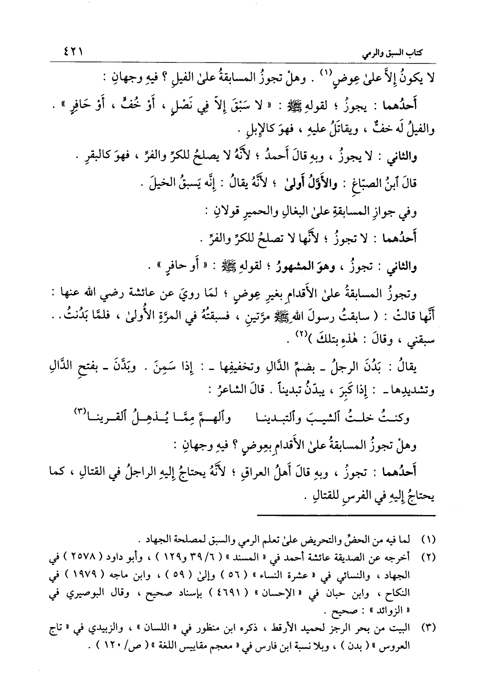وهل تجوز المسابقة على الأقدام بعوض؟ فيه وجهان:
