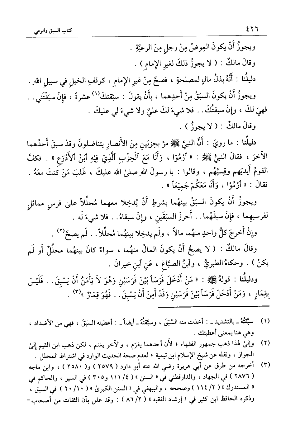 ودليلنا: قوله - صَلَّى اللَّهُ عَلَيْهِ وَسَلَّمَ -: «من أدخل فرسًا بين فرسين وهو لا يأمن أن يسبق.. فليس بقمار، ومن أدخل فرسًا بين فرسين وقد أمن أن يسبق.. فهو قمار» .
