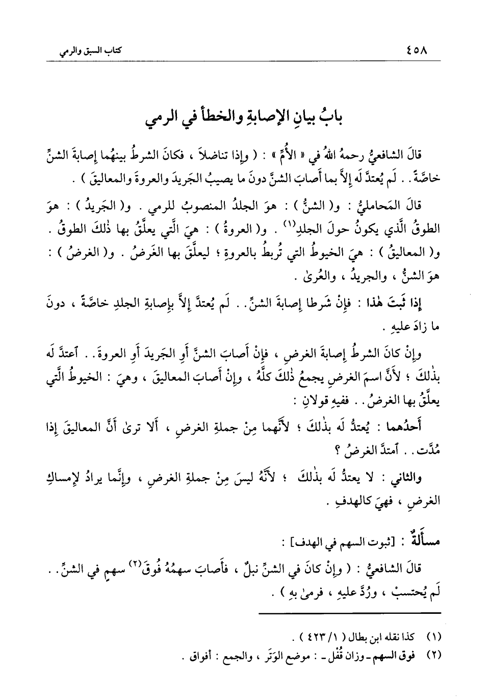 [باب بيان الإصابة والخطأ في الرمي]
