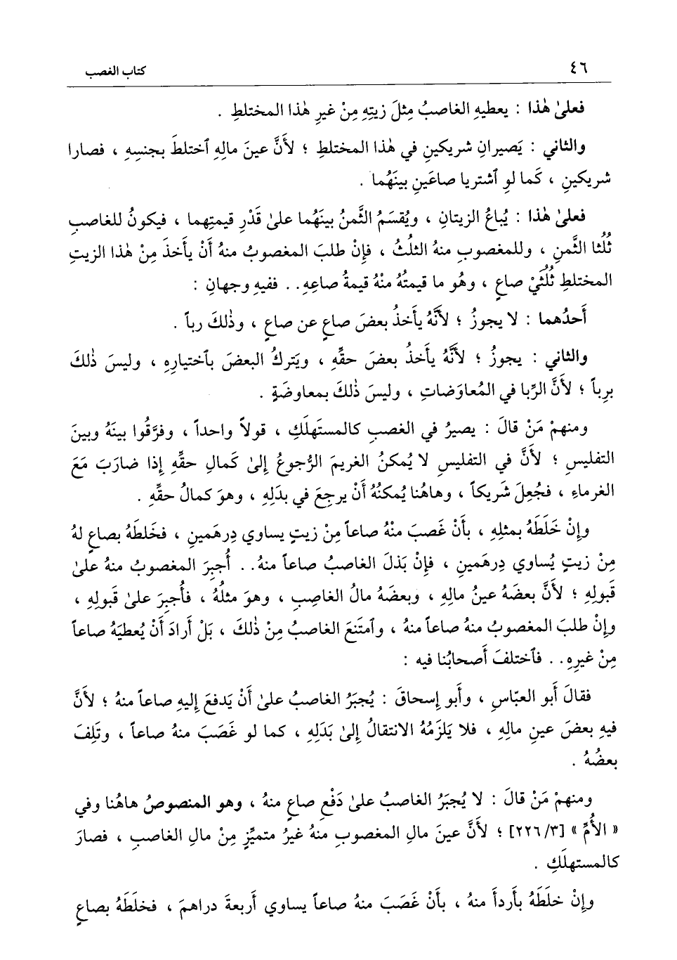 ومنهم من قال: لا يجبر الغاصب على دفع صاع منه، وهو المنصوص هاهنا في (الأم) [3/226] ؛ لأن عين مال المغصوب منه غير متميز من مال الغاصب، فصار كالمستهلك.