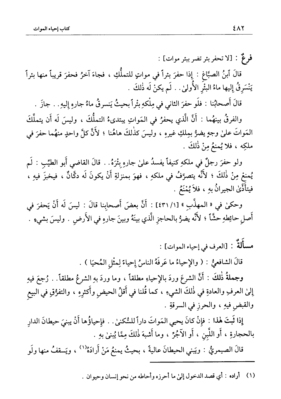 ] : قال الشافعي: (والإحياء ما عرفه الناس إحياء لمثل المحيا) .