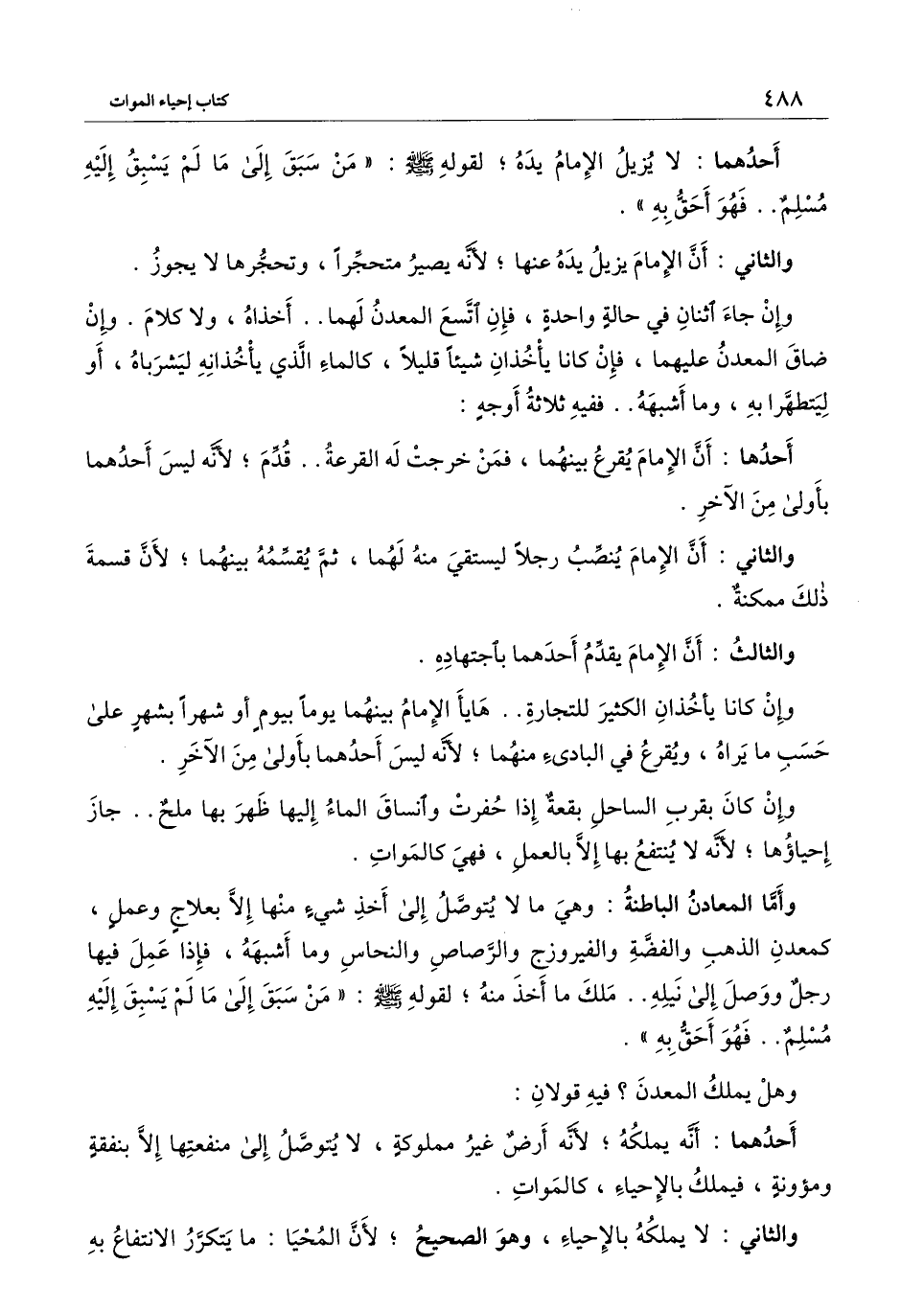 وأما المعادن الباطنة: وهي ما لا يتوصل إلى أخذ شيء منها إلا بعلاج وعمل، كمعدن الذهب والفضة والفيروز والرصاص والنحاس وما أشبهه، فإذا عمل فيها رجل ووصل إلى نيله.. ملك ما أخذ منه؛ لقوله - صَلَّى اللَّهُ عَلَيْهِ وَسَلَّمَ -: «من سبق إلى ما لم يسبق إليه مسلم. فهو أحق به» .