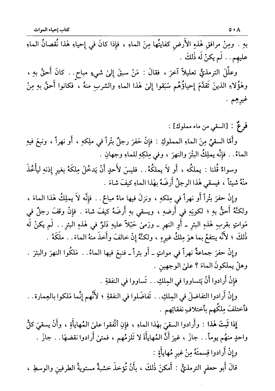 وعلل الترمذي تعليلًا آخر، فقال: من سبق إلى شيء مباح.. كان أحق به، وهؤلاء الذين تقدم إحياؤهم سبقوا إلى هذا الماء والشرب منه، فكانوا أحق به من غيرهم.