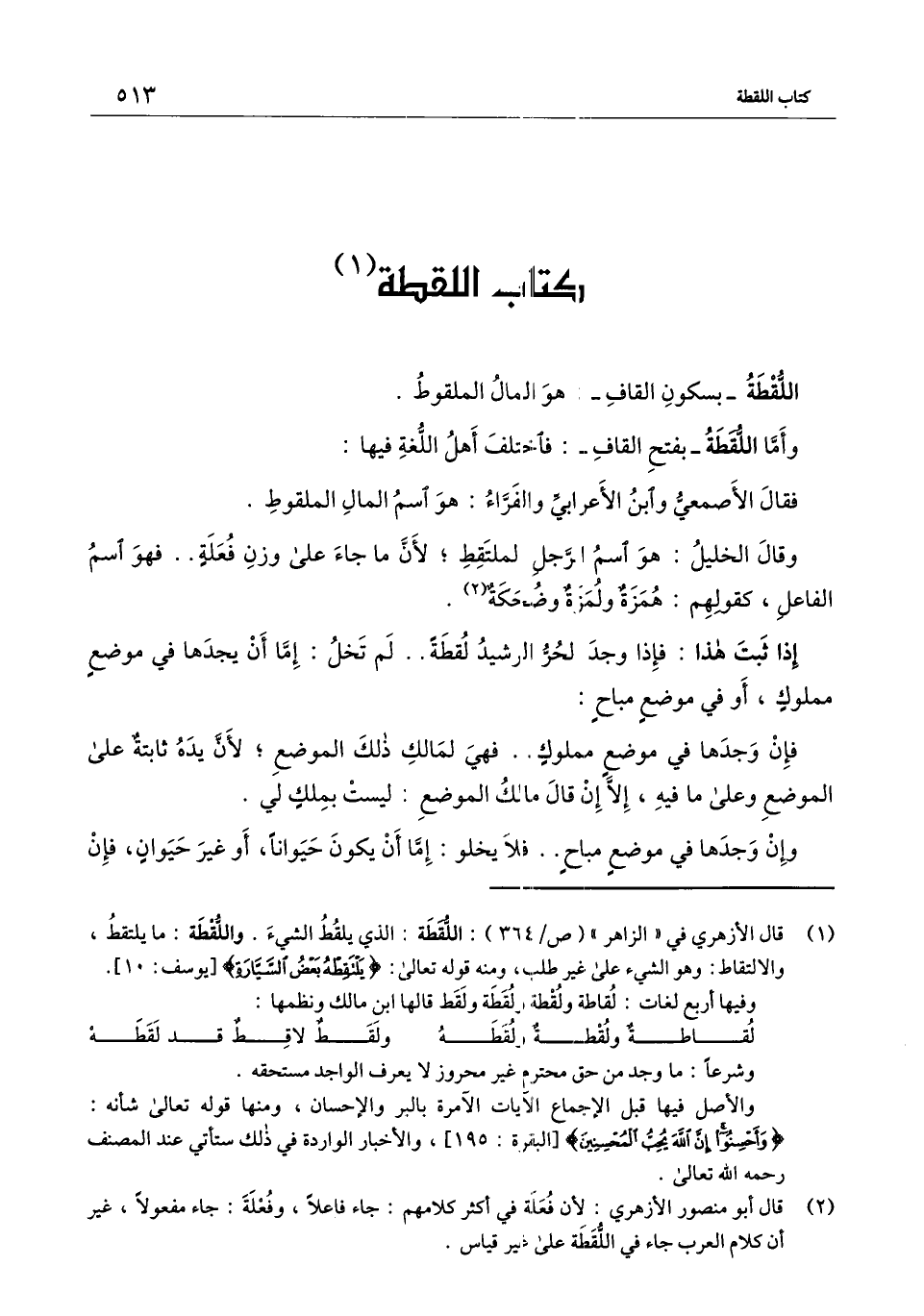 كتاب اللقطة اللقطة ـ بسكون القاف ـ: هو المال الملقوط.