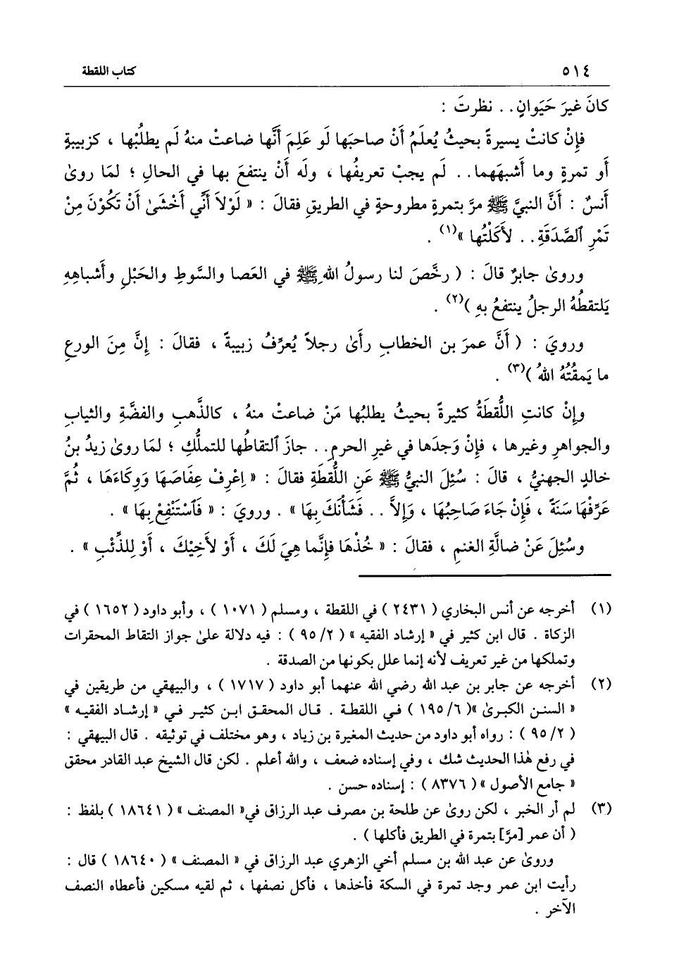 وروى جابر قال: «رخص لنا رسول الله - صَلَّى اللَّهُ عَلَيْهِ وَسَلَّمَ - في العصا والسوط والحبل وأشباهه يلتقطه الرجل ينتفع به» .