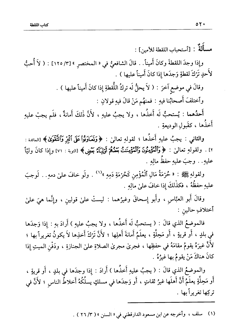 والثاني: يجب عليه أخذها؛ لِقَوْلِهِ تَعَالَى: {وَتَعَاوَنُوا عَلَى الْبِرِّ وَالتَّقْوَى} [المائدة: 2] [المائدة:2] ، ولقوله تعالى: {وَالْمُؤْمِنُونَ وَالْمُؤْمِنَاتُ بَعْضُهُمْ أَوْلِيَاءُ بَعْضٍ} [التوبة: 71] [التوبة:71] . وإذا كان وليا عليه.. وجب عليه حفظ ماله.