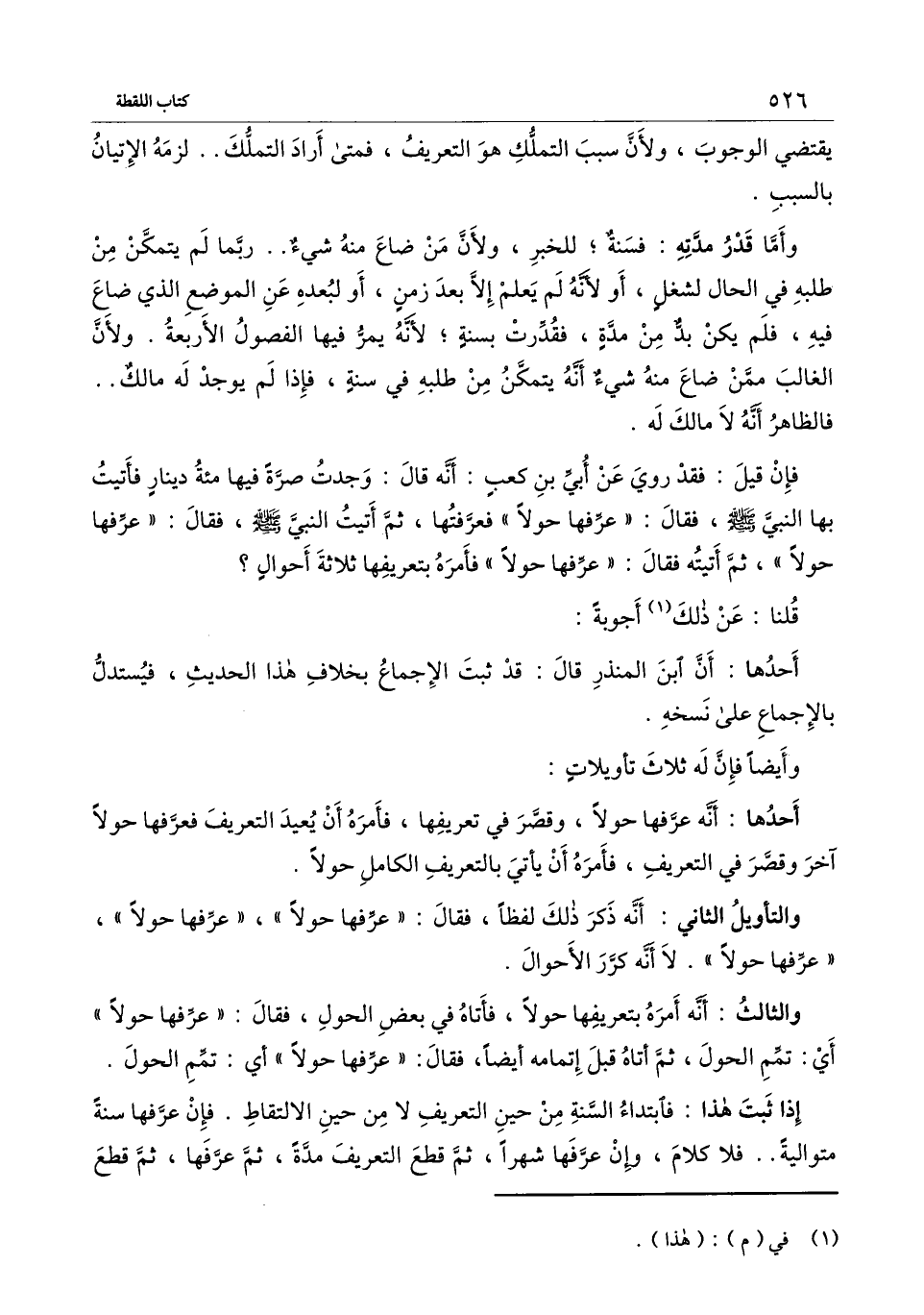 والتأويل الثاني: أنه ذكر ذلك لفظًا، فقال: «عرفها حولًا» ، «عرفها حولًا» ، «عرفها حولًا» ، لا أنه كرر الأحوال.