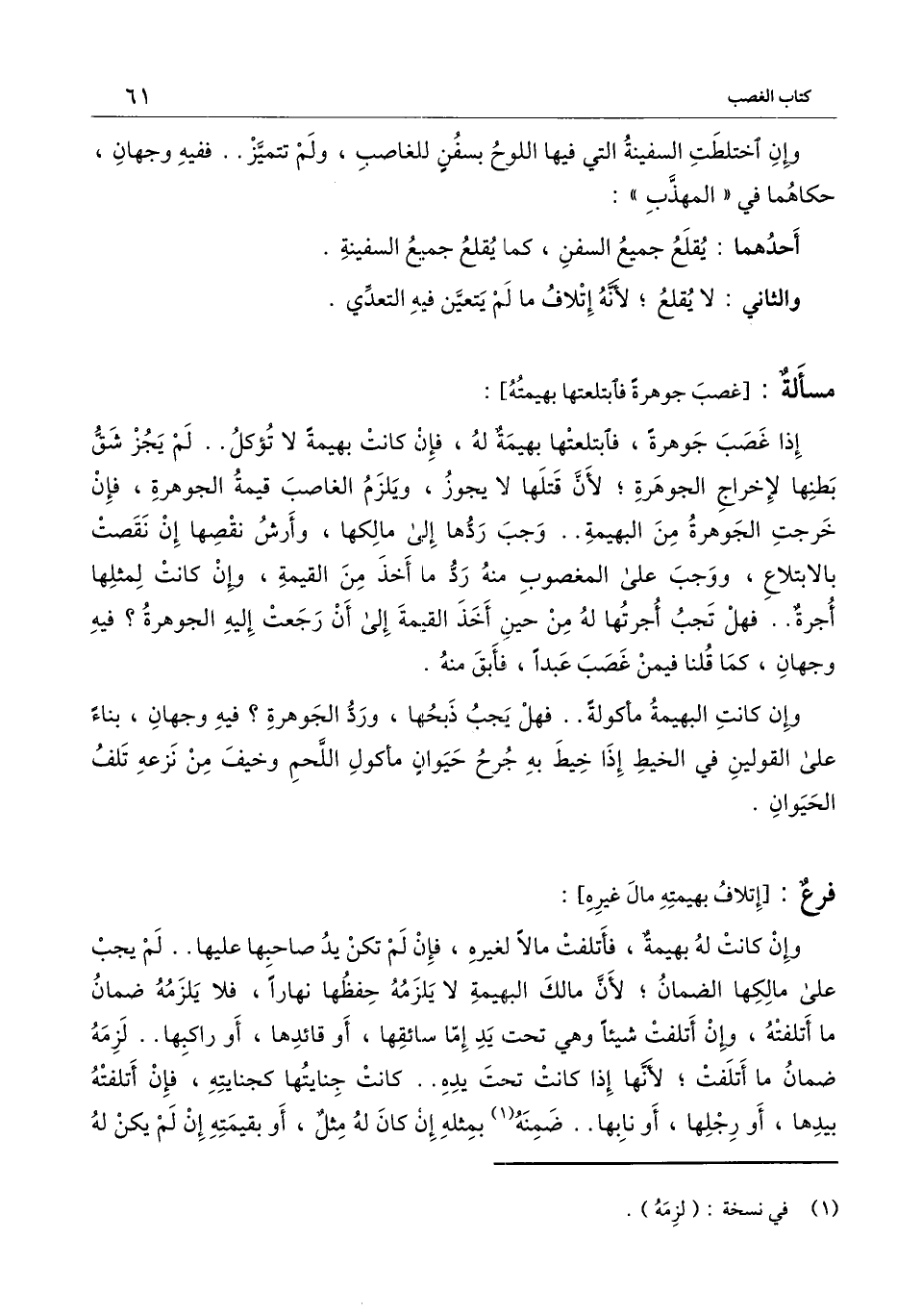 [مسألة: غصب جوهرة فابتلعتها بهيمته]