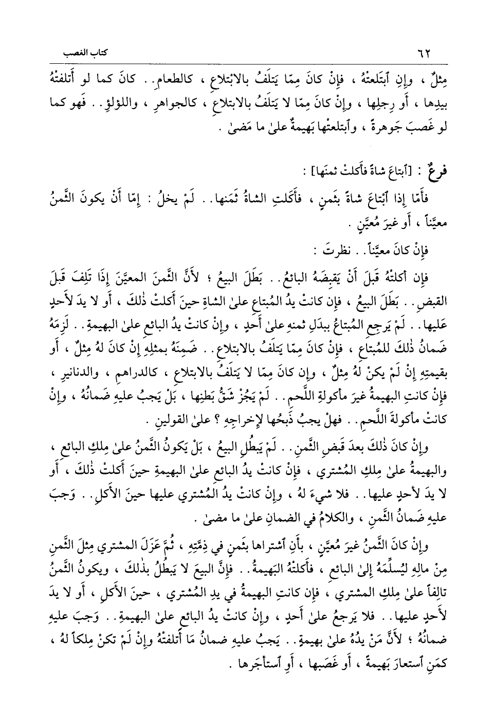] : فأما إذا ابتاع شاة بثمن، فأكلت الشاة ثمنها.. لم يخل: إما أن يكون الثمن معيناً، أو غير معين.