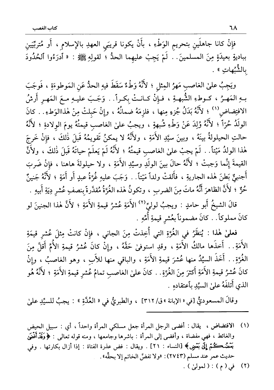 ويجب على الغاصب مهر المثل؛ لأنه وطء سقط فيه الحد عن الموطوءة، فوجب به المهر، كوطء الشبهة، فإن كانت بكراً.. وجب عليه مع المهر أرش الافتضاض؛ لأنه بدل جزء منها، فلزمه ضمانه، وإن حبلت من هذا الوطء.. كان الولد حراً؛ لأنه ولد عن وطء شبهة، ويجب على الغاصب قيمته يوم الولادة؛ لأنه حالت الحيلولة بينه، وبين سيد الأمة، ولأنه لا يمكن تقويمه قبل ذلك، فإن خرج هذا الولد ميتاً.. لم يجب على الغاصب قيمته؛ لأنه لم يعلم حياته قبل ذلك، ولأن القيمة إنما وجبت؛ لأنه حال بين الولد وسيد الأمة، ولا حيلولة هاهنا، فإن ضرب أجنبي بطن هذه الجارية، فألقت ولداً ميتاً.. وجب عليه غرة عبد أو أمة؛ لأنه جنين حر؛ لأن الظاهر أنه مات من الضرب، وتكون هذه الغرة مقدرة بنصف عشر دية أبيه.