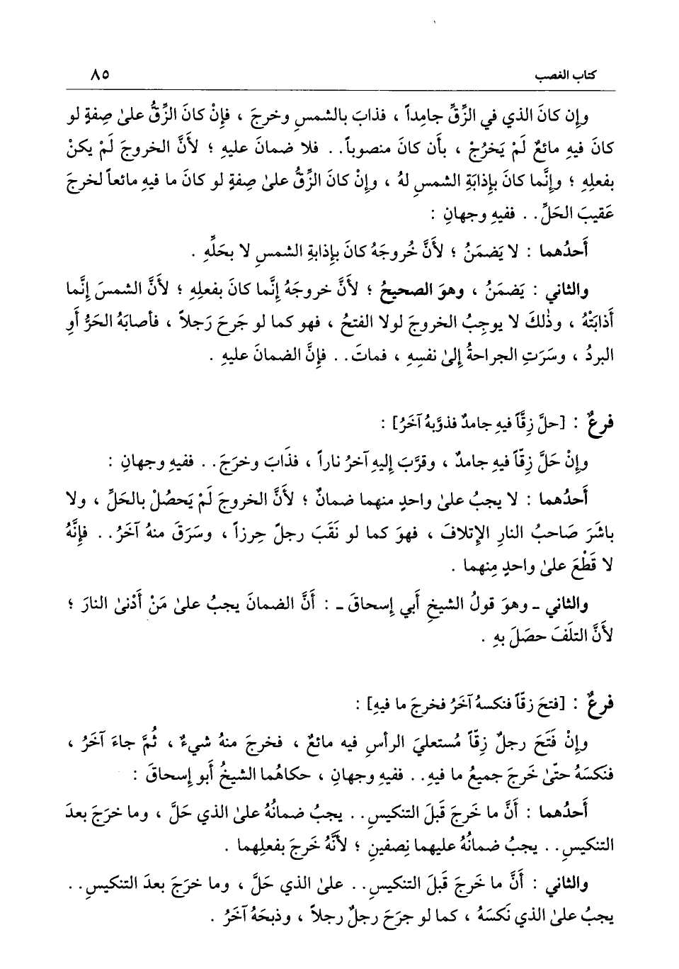 ] : وإن فتح رجل زقا مستعلي الرأس فيه مائع، فخرج منه شيء، ثم جاء آخر، فنكسه حتى خرج جميع ما فيه.. ففيه وجهان، حكاهما الشيخ أبو إسحاق:
