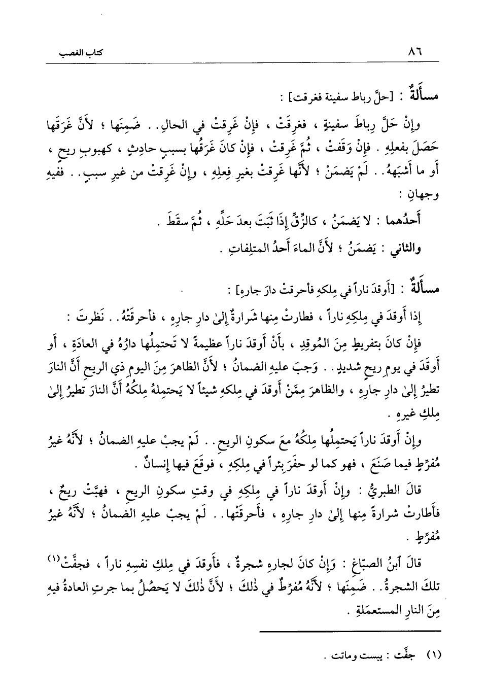 ] : إذا أوقد في ملكه ناراً، فطارت منها شرارة إلى دار جاره، فأحرقته.. نظرت:
