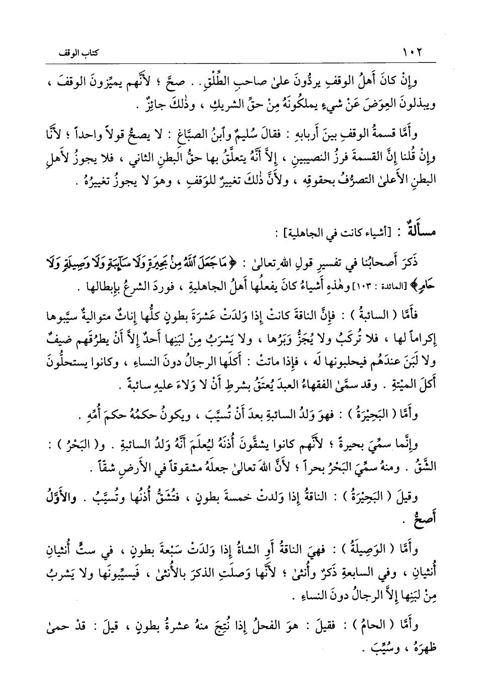 ذكر أصحابنا في تفسير قول الله تعالى: {مَا جَعَلَ اللَّهُ مِنْ بَحِيرَةٍ وَلا سَائِبَةٍ وَلا وَصِيلَةٍ وَلا حَامٍ} [المائدة: 103] [المائدة: 103] وهذه أشياء كان يفعلها أهل الجاهلية، فورد الشرع بإبطالها.