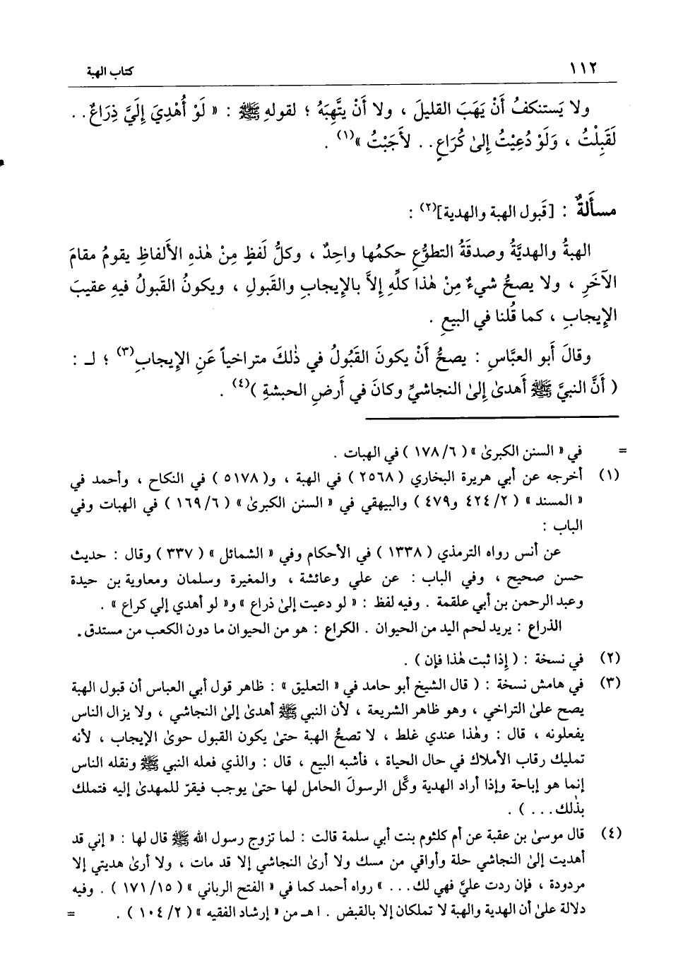 وقال أبو العباس: يصح أن يكون القبول في ذلك متراخيًا عن الإيجاب، لـ: «أن النبي - صَلَّى اللَّهُ عَلَيْهِ وَسَلَّمَ - أهدى إلى النجاشي وكان في أرض الحبشة» .