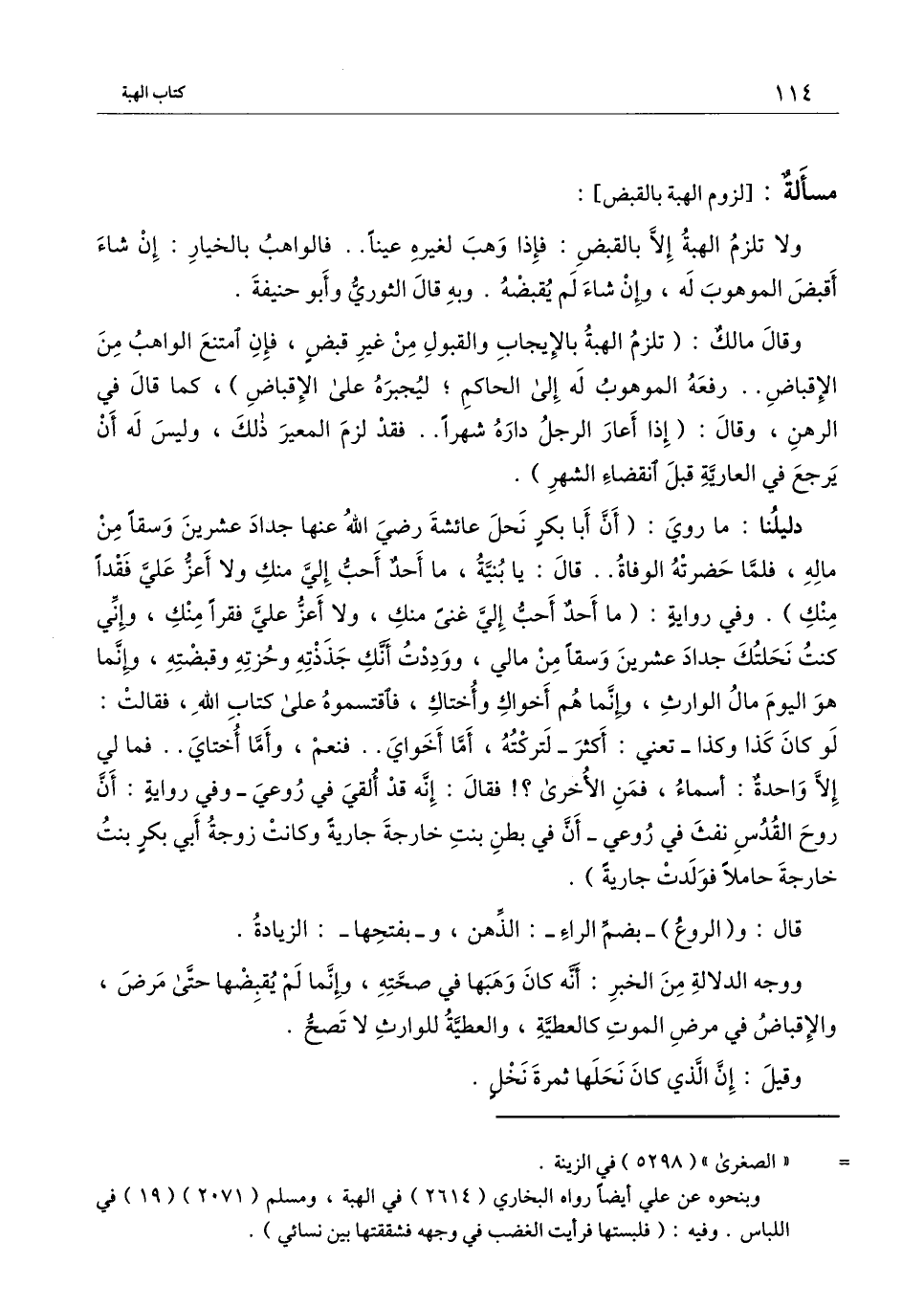 دليلنا: ما روي: (أن أبا بكر نحل عائشة - رَضِيَ اللَّهُ عَنْهَا - جداد عشرين وسقًا من ماله، فلما حضرته الوفاة.. قال: يا بنية، ما أحد أحب إلي منك ولا أعز علي فقدًا منك) . وفي رواية: (ما أحد أحب إلي غنى منك، ولا أعز علي فقرًا منك، وإني كنت نحلتك جداد عشرين وسقًا من مالي، ووددت أنك جذذته وحزته وقبضته، وإنما هو اليوم مال الوارث، وإنما هم أخواك وأختاك، فاقتسموه على كتاب الله، فقالت: لو كان كذا وكذا - تعني: أكثر - لتركته، أما أخواي.. فنعم، وأما أختاي.. فما لي إلا واحدة: أسماء، فمن الأخرى؟! فقال: إنه قد ألقي في روعي - وفي رواية: أن روح القدس نفث في روعي - أن في بطن بنت خارجة جارية، وكانت زوجة أبي بكر بنت خارجة حاملًا فولدت جارية) .
