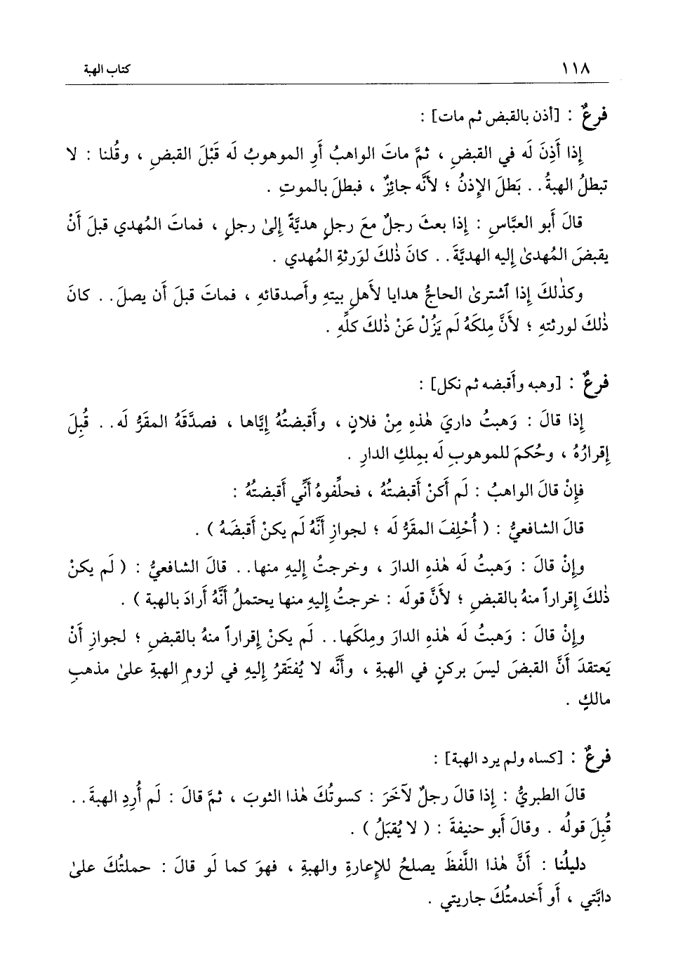 قال أبو العباس: إذا بعث رجل مع رجل هدية إلى رجل، فمات المهدي قبل أن يقبض المهدى إليه الهدية.. كان ذلك لورثة المهدي.