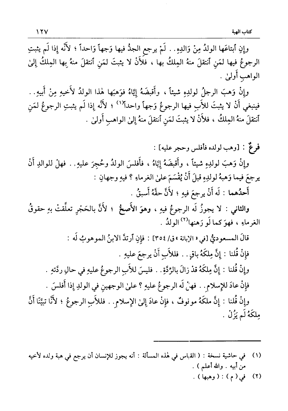 وإن وهب لولده شيئًا، وأقبضه إياه، فأفلس الولد وحجر عليه.. فهل للوالد أن يرجع فيما وهبه لولده قبل أن يقسم على الغرماء؟ فيه وجهان.
