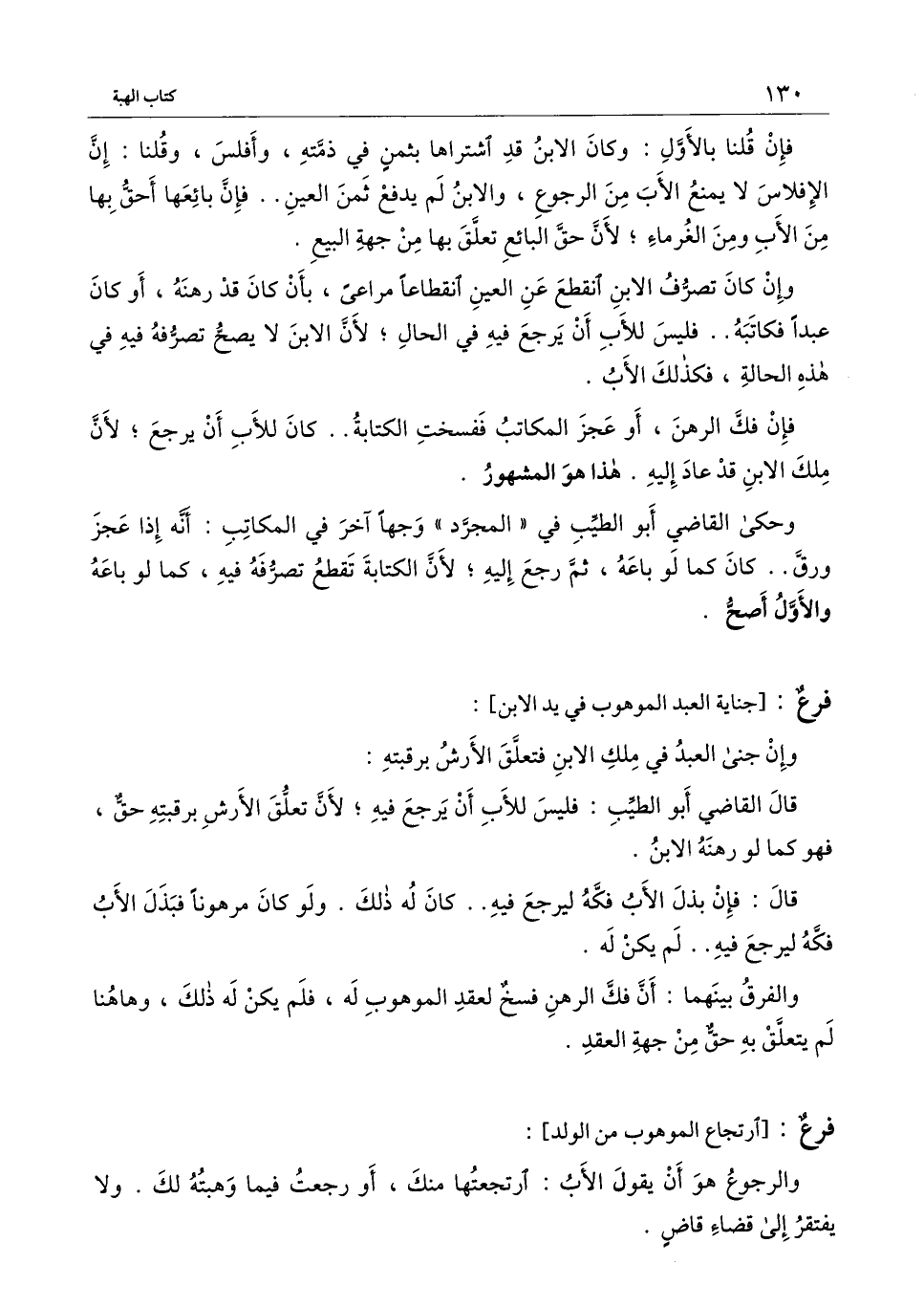 [فرع ارتجاع الموهوب من الولد]
