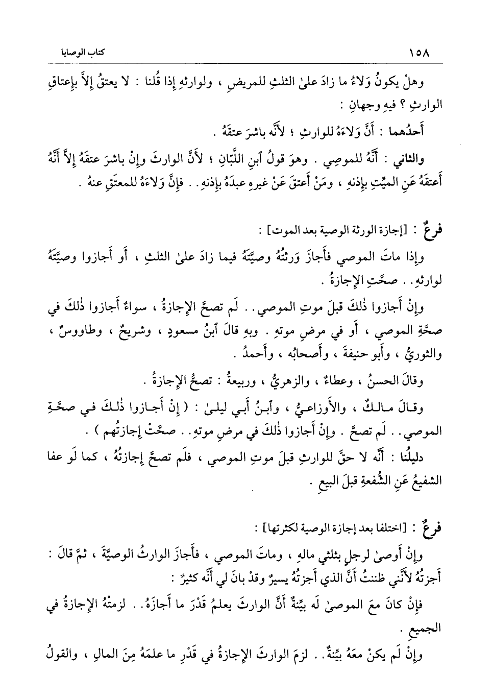 [فرع اختلفا بعد إجازة الوصية لكثرتها]