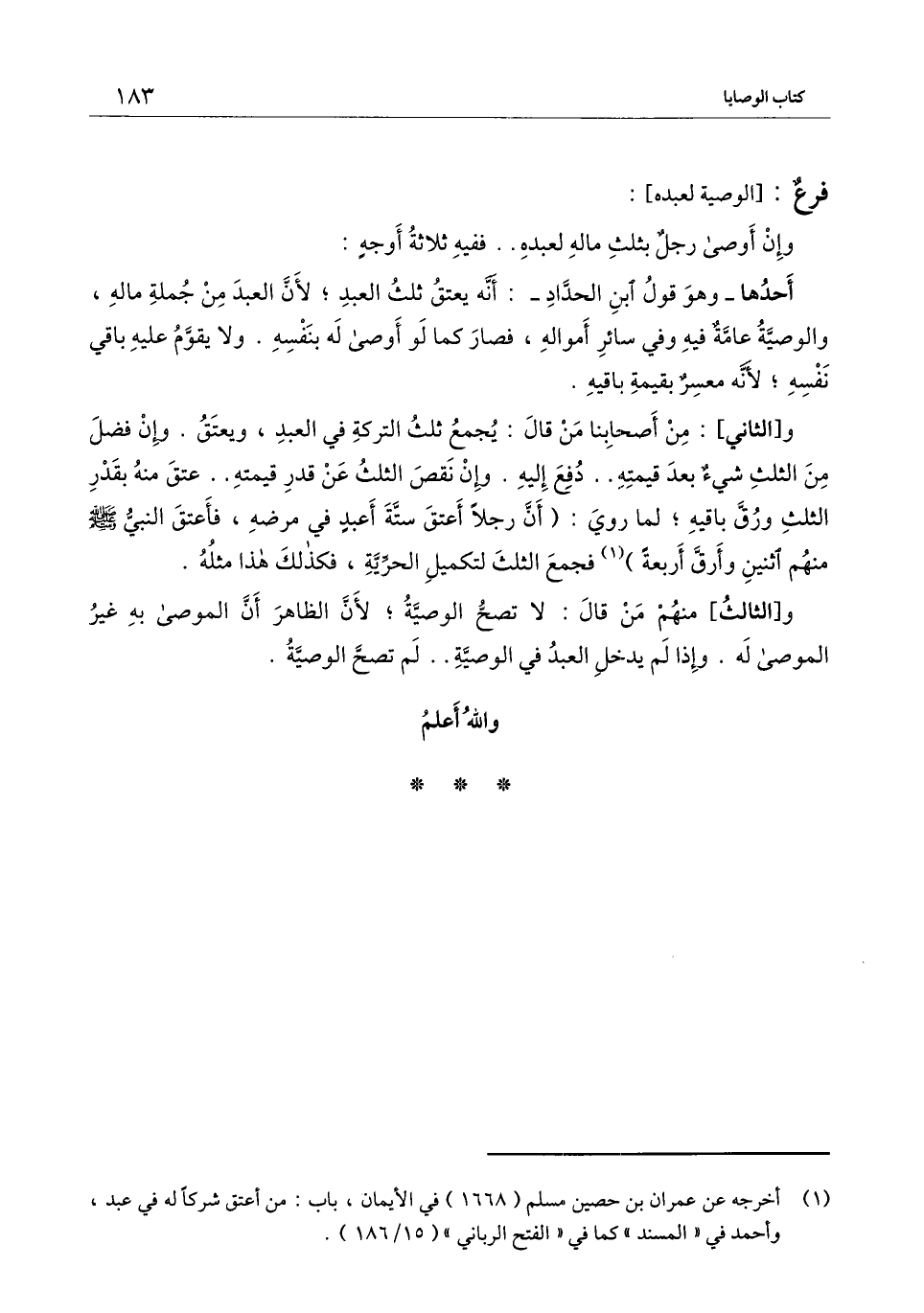 ) : وإن أوصى رجل بثلث ماله لعبده.. ففيه ثلاثة أوجه: