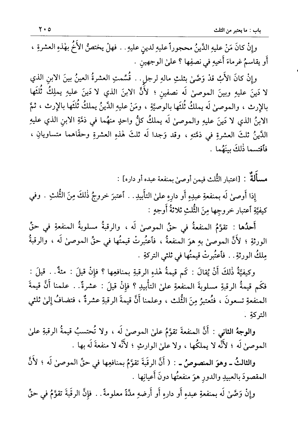 والثالث ـ وهو المنصوص ـ: (أن الرقبة تقوم بمنافعها في حق الموصى له؛ لأن المقصود بالعبيد والدور هو منفعتها دون أعيانها) .