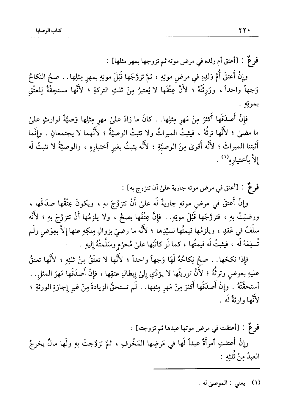 ] : وإن أعتقت امرأة عبدا لها في مرضها المخوف، ثم تزوجت به ولها مال يخرج العبد من ثلثه: