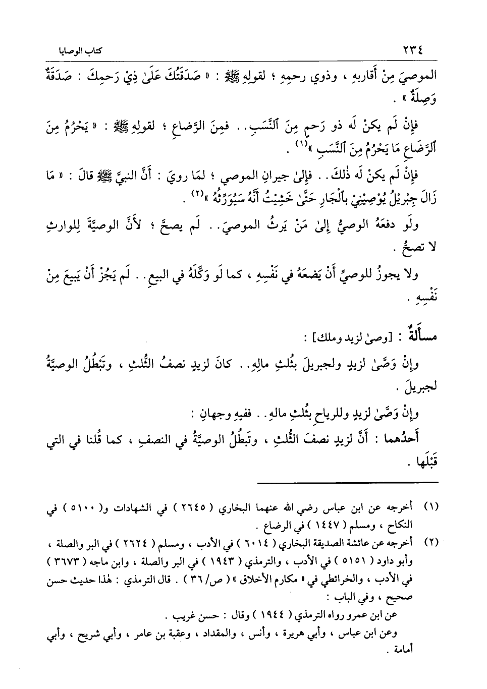 الموصي من أقاربه، وذوي رحمه؛ لقوله - صَلَّى اللَّهُ عَلَيْهِ وَسَلَّمَ -: «صدقتك على ذي رحمك: صدقة وصلة» .